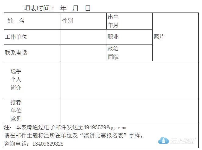 “炎帝精神·随州故事”主题演讲比赛报名表