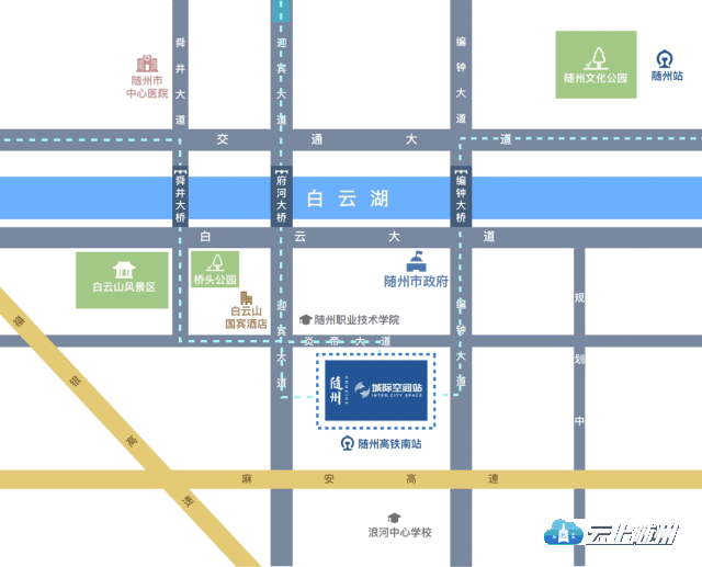 汉十高铁随州南站、编钟音乐之都创意产业园、随州传媒中心、公共检测中心、白云湖学校等城市重点项目逐步落位,城市热土飞速发展。未来城南新区必然是随州缓解城市中心压力,增强城市综合实力的有效手段。