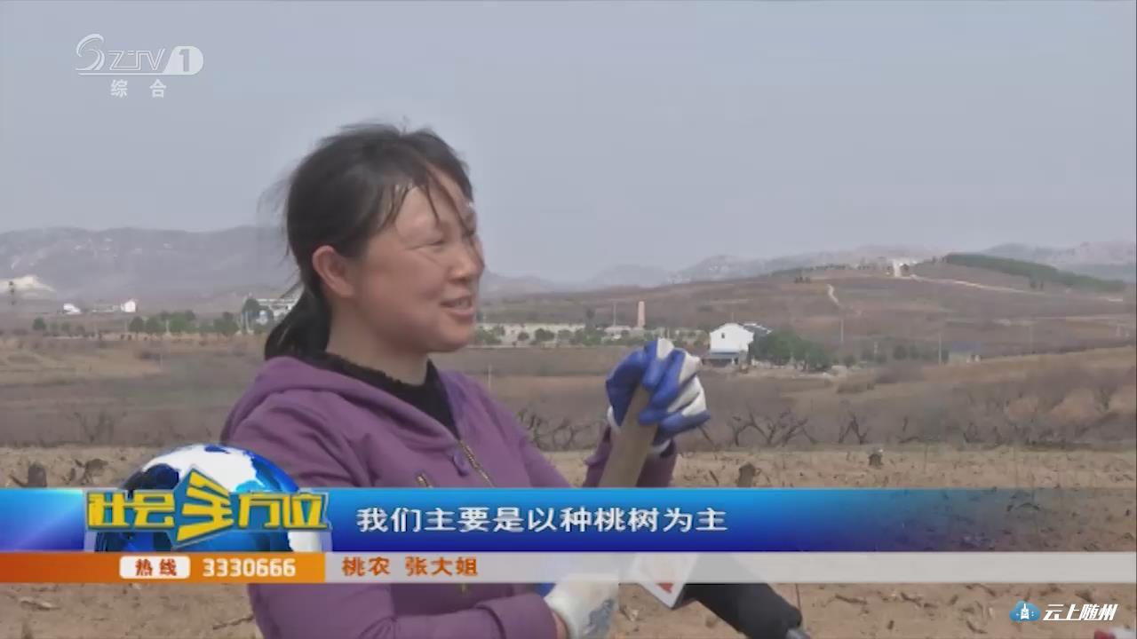 【采访】桃农 张大姐:现在这些树要重新换一个品种,我们已经种了有十多年了,树有些老化,今年听说这个品种还可以,我们主要是以种桃树为主,我们就把这个看起来还可以的品种换了增加一些收入。