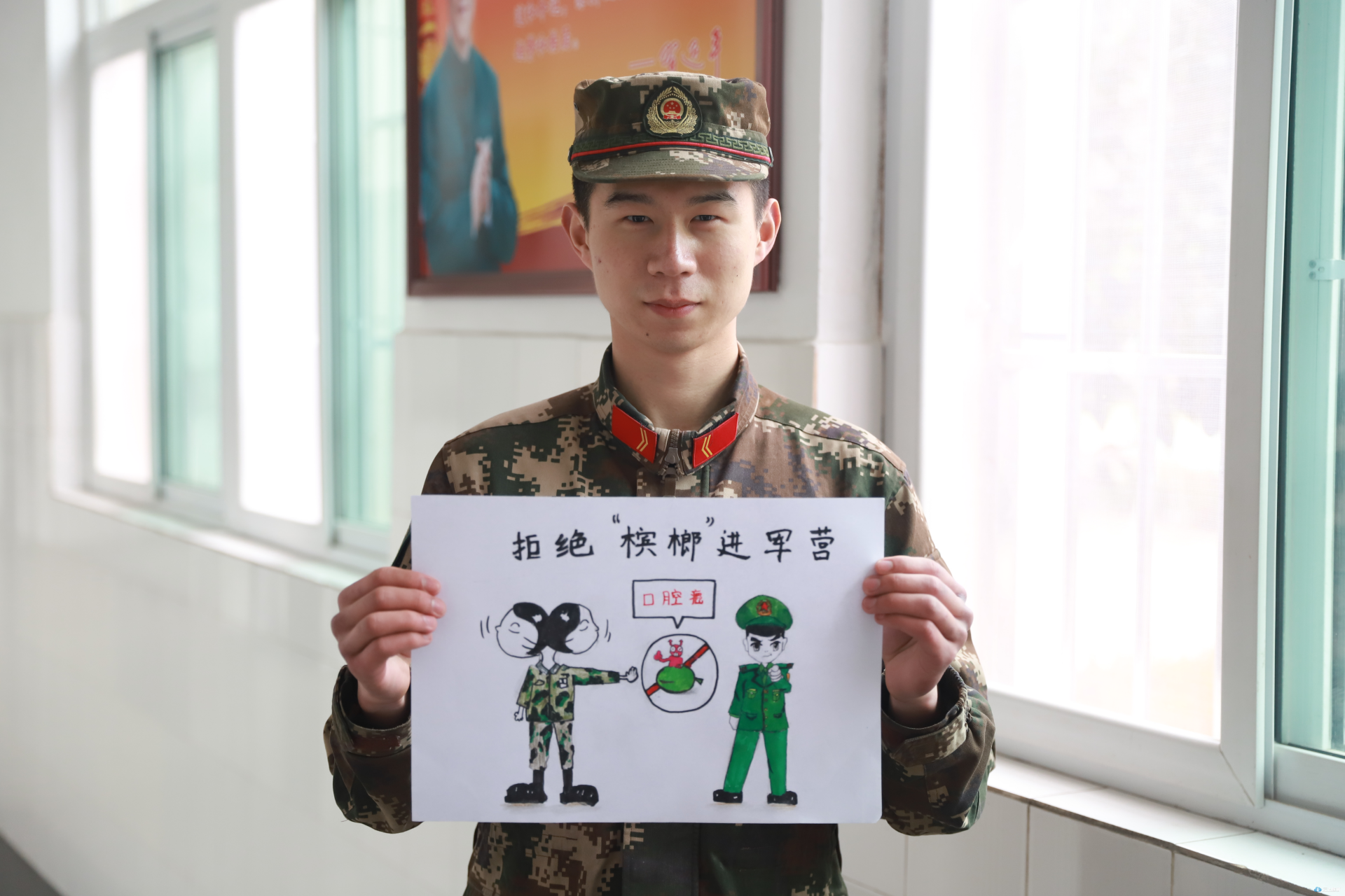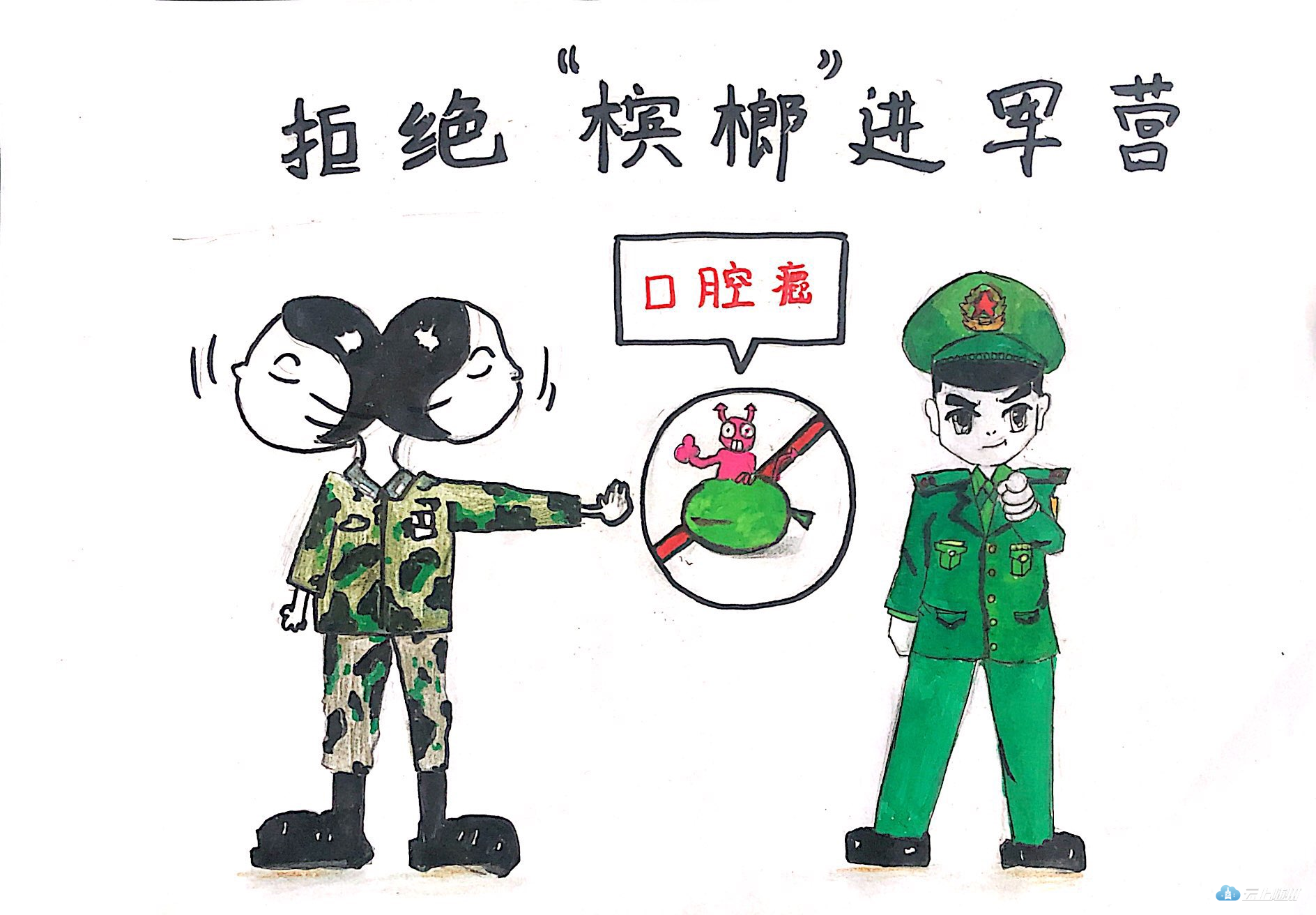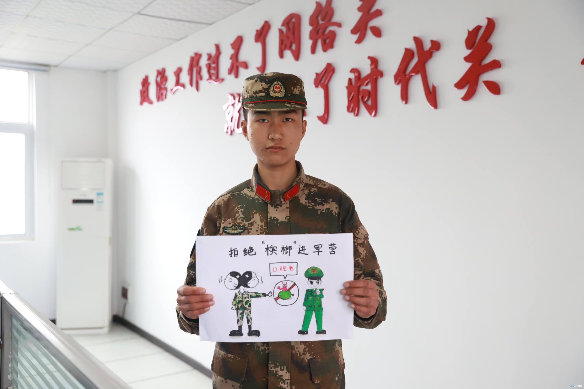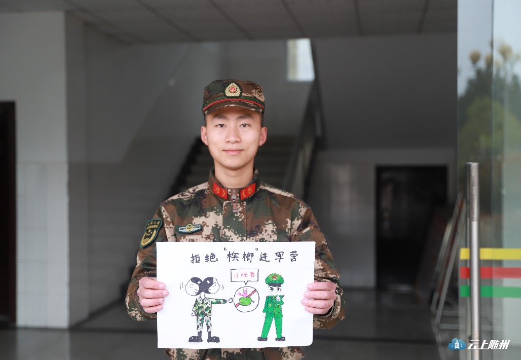 倡导大家把“拒绝“槟榔”进军营”作为我们的口号