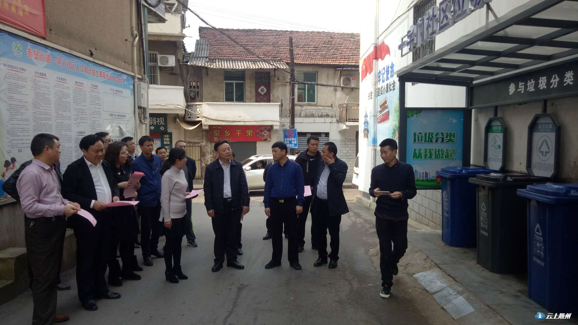 在黄冈市黄州区,张健一行先后到赤壁街道建新社区中兴小区和社区党员群众服务中心了解“三个全覆盖”工作和城管执法工作,到赤壁街道一字门社区察看老旧小区、背街小巷改造和环境保洁机制情况。