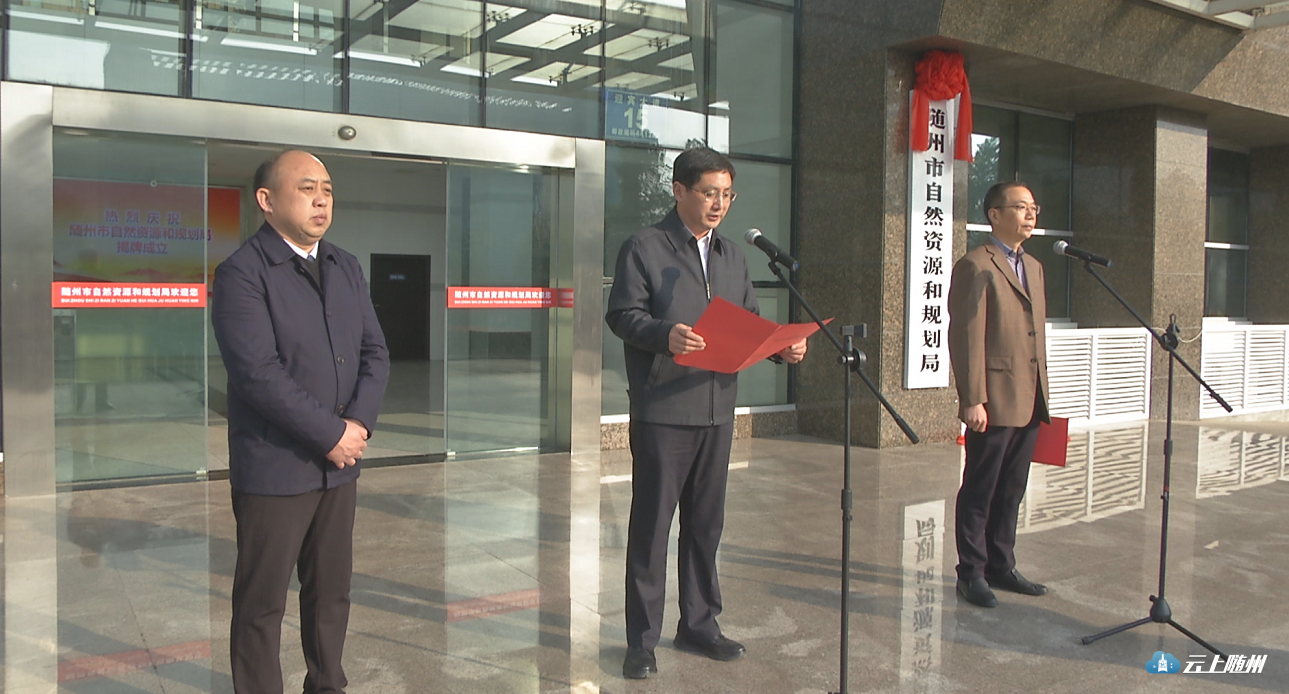 今天上午,随州市自然资源和规划局挂牌.根据随州市机构改革方案,将市国土资源局的职责、市城乡规划局的职责、市林业局的职责等整合,组建市自然资源和规划局,作为市政府工作部门,对外加挂市林业局牌子,不再保留市国土资源局、市城乡规划局,不再保留单设的市林业局。