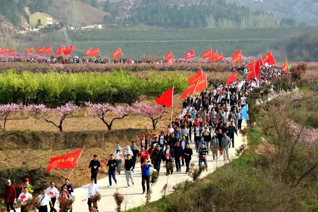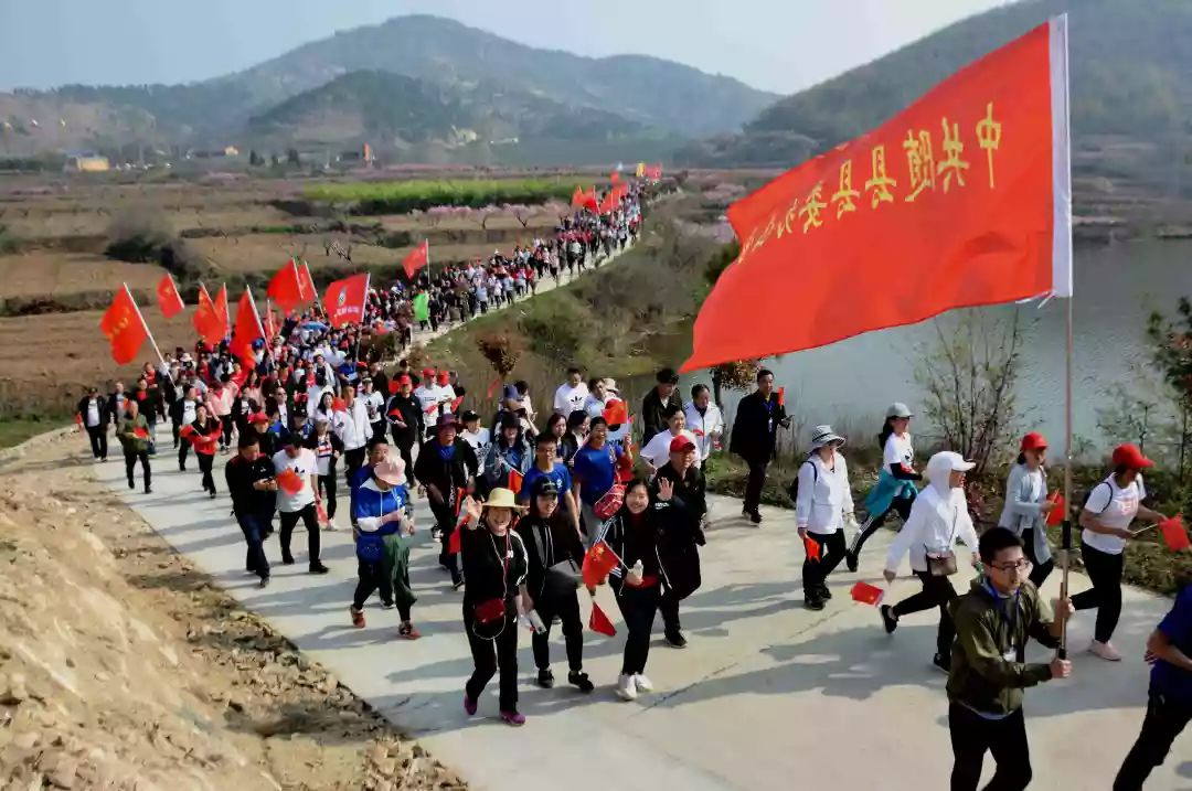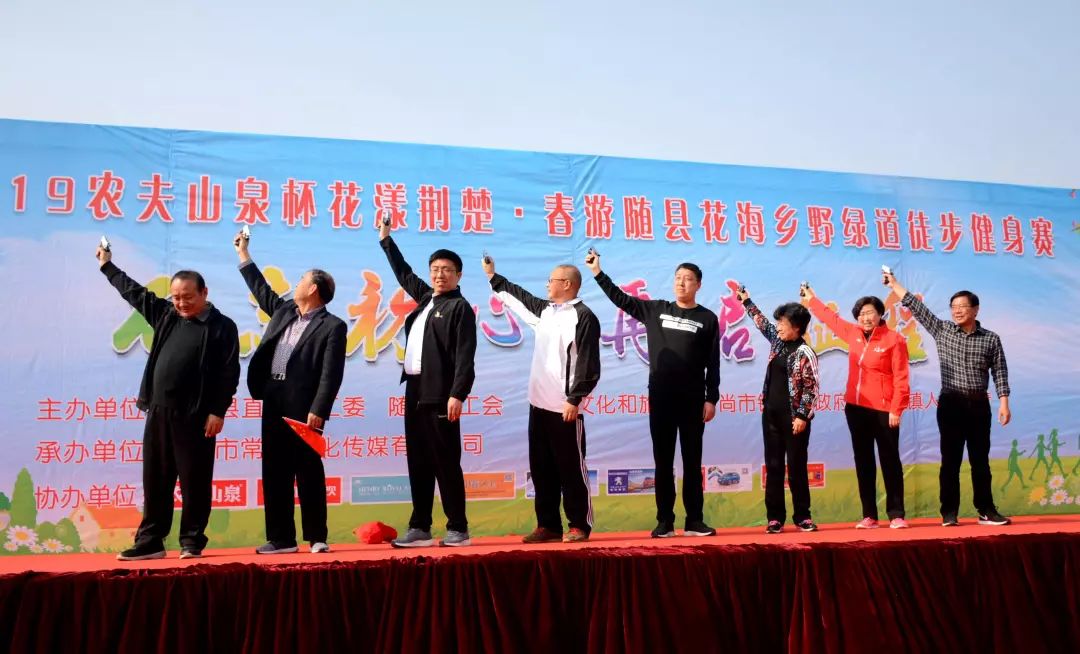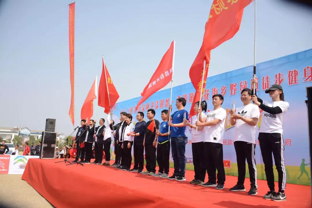 红旗招展花丛间,激情昂扬勇向前。3月27日,2019农夫山泉杯花漾荆楚·春游随县花海乡野绿道徒步健身赛在唐县镇华宝山景区激情开赛。来自县直各部门、镇场的1100余名干部职工在阳光、田野和花海中体验了一场健康而愉快的徒步健身赛事。