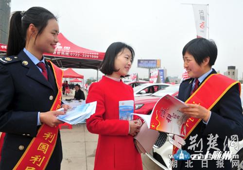 近日,2019随州春季汽车博览会举行。国家税务总局随州市税务局组织青年志愿者利用周末时间,在车展现场开展减税降费春风行政策宣传活动,为前来咨询车辆购置税等税收政策的群众答疑解惑。