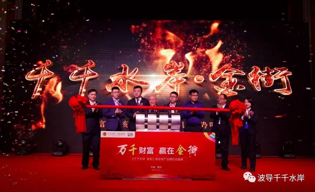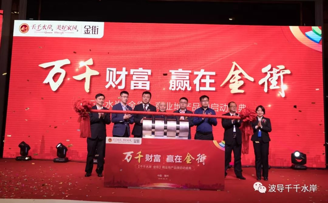 在全场嘉宾的见证下,波导集团随州波导科技有限公司总经理潘光明先生等八位领导,共同推杆启动,礼花盛起,【千千水岸•金街】192席财富金铺正式开启。
