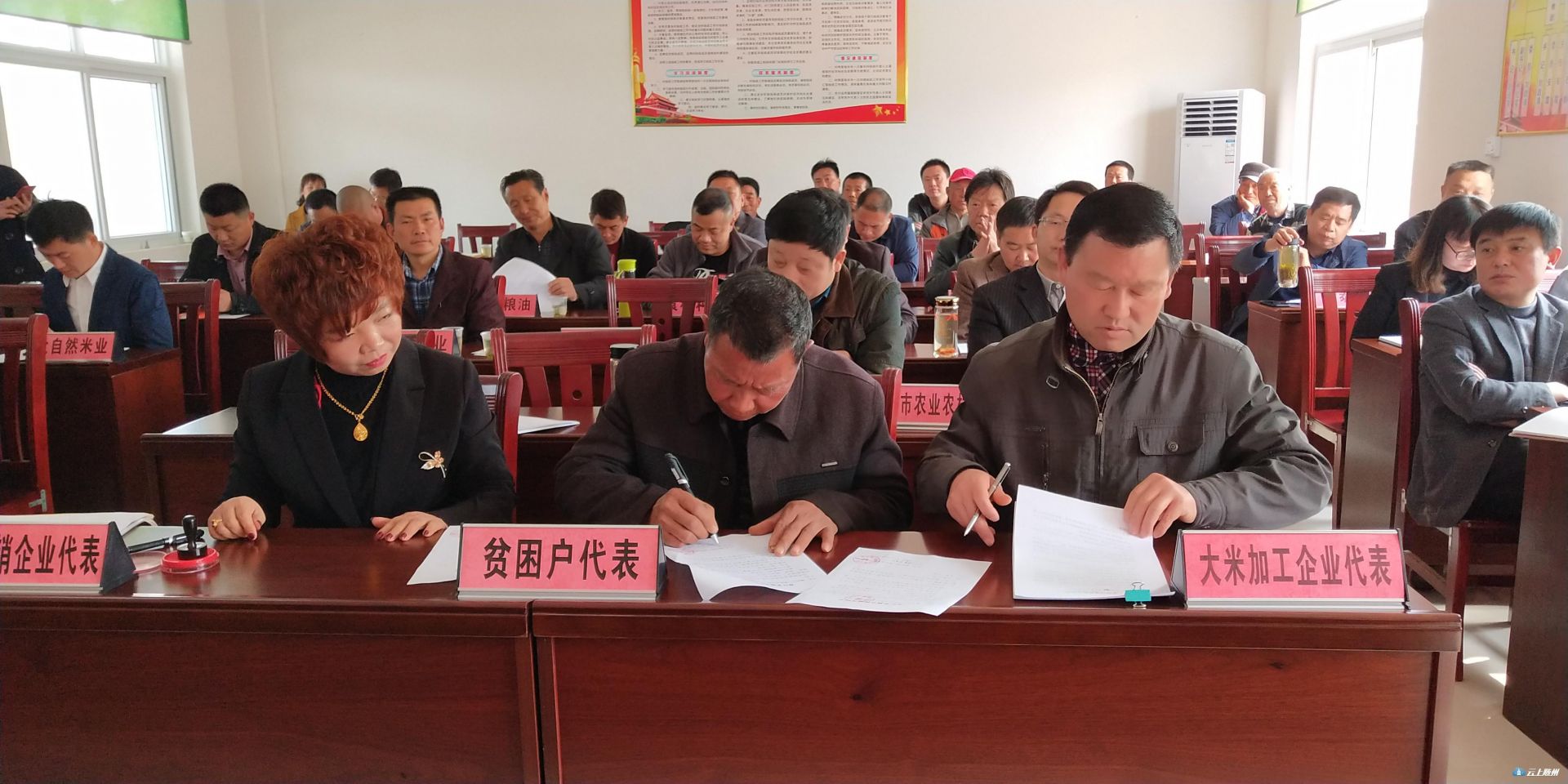 在随县草店镇三道河村办公室内,全市优质稻产业开发和产业扶贫推进会上,来自随县的贫困户代表和全市大米加工企业、种子公司、种植合作社一起签订了双订单协议,这标志着我市贫困户通过种植优质稻增收有了双重保障。“双订单”就是种子经营企业与农户签订优质稻种植合同,确保农民种植的优质稻不出问题;稻米加工企业与农户签订加价收购合同,让农户能稳定增收。