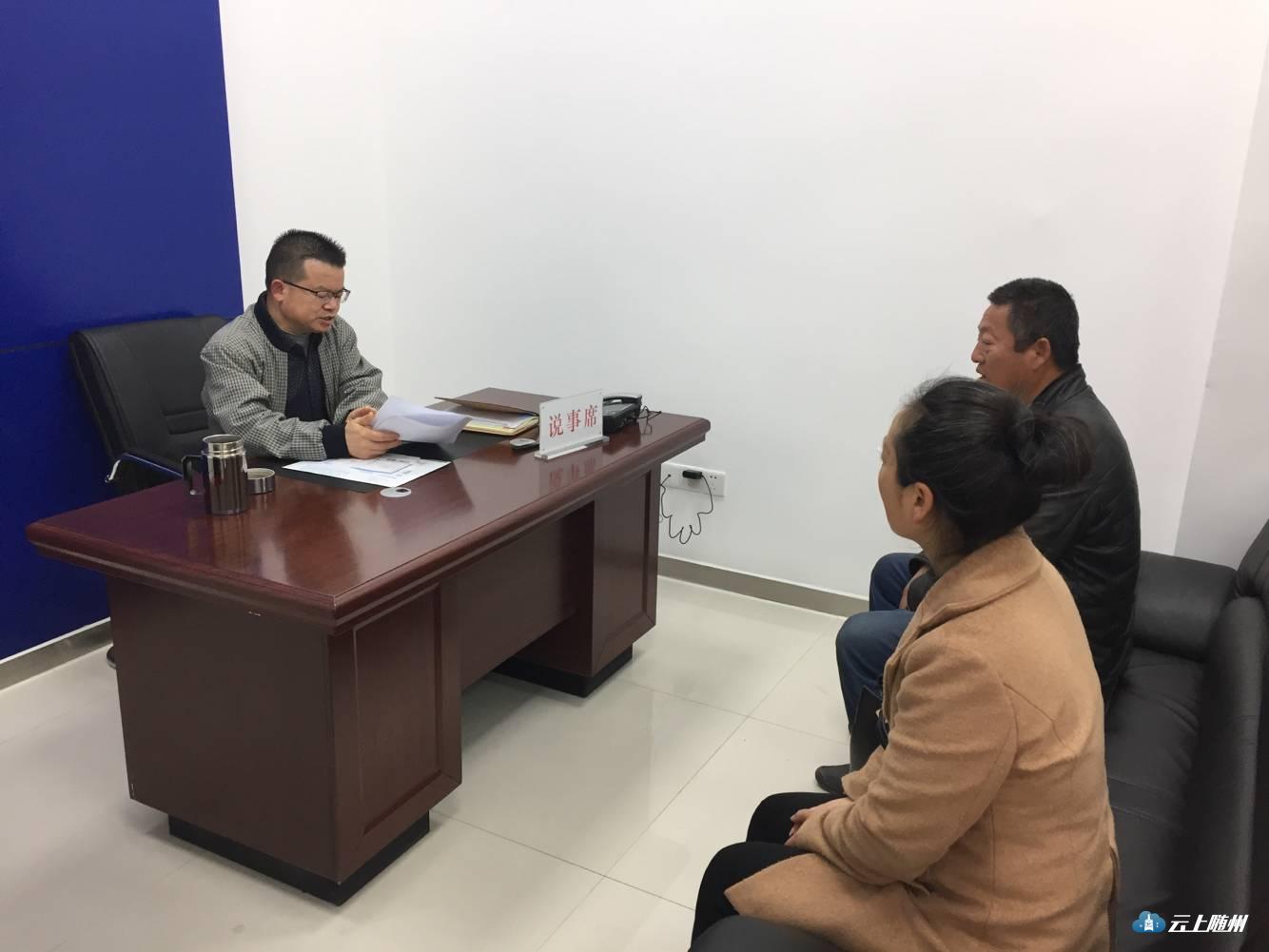 2019年4月4日,为深入贯彻落实4月1日召开的随州市深化“逢四说事”工作推进会议精神,随州市司法局党委书记、局长李伟业在第一个接待日,带头在市公共法律服务中心逢四说事室坐班接访,为多名来访群众细致解答相关法规政策、疑难问题和信访诉求,受到来访群众一致好评和肯定。接访过程中,首位来访群众主要反映了当事人不服法院一审判决问题,恳请市委依法治市委员会办公室牵头协调处置等。李伟业局长凭借多年从事法院系统、政府法制工作经验,站在公正、公平立场,围绕信访人反映的核心问题,从《民事诉讼法》、《仲裁法》、《律师法》等多方面进行解惑释疑,向信访人提出了可向上一级法院提出申诉的答复建议,并告知了相关办理程序,信访当事人表示认可满意。