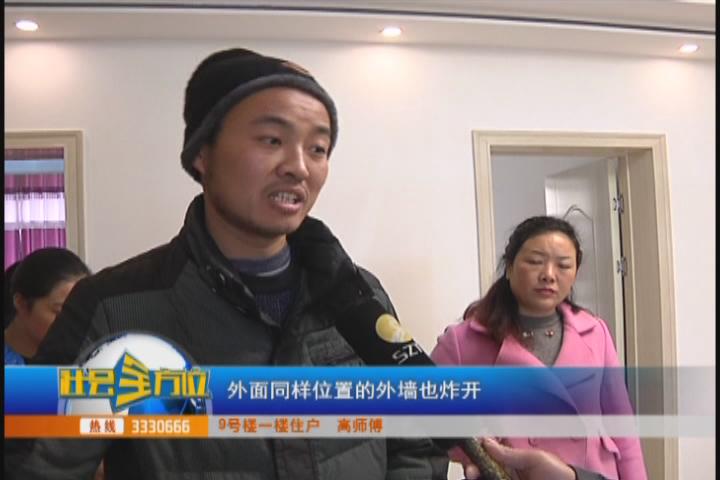 记者随住户们来到城南新区涢水社区还建房9号楼东单元,1楼到4楼的住户们家中多个相同位置都出现了炸裂的现象。在高师傅家中的客厅、卧室、阳台等多个位置,都可以看到墙上的裂缝,并且由于墙壁开裂,高师傅家刚装修好的墙面瓷砖也随之开裂。