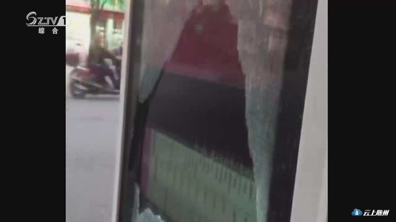 (同期声)我们发现这个站牌被人为的损坏。经过周围周边的居民和路过的行人,我们调查询问有人用硬物或石头损坏。