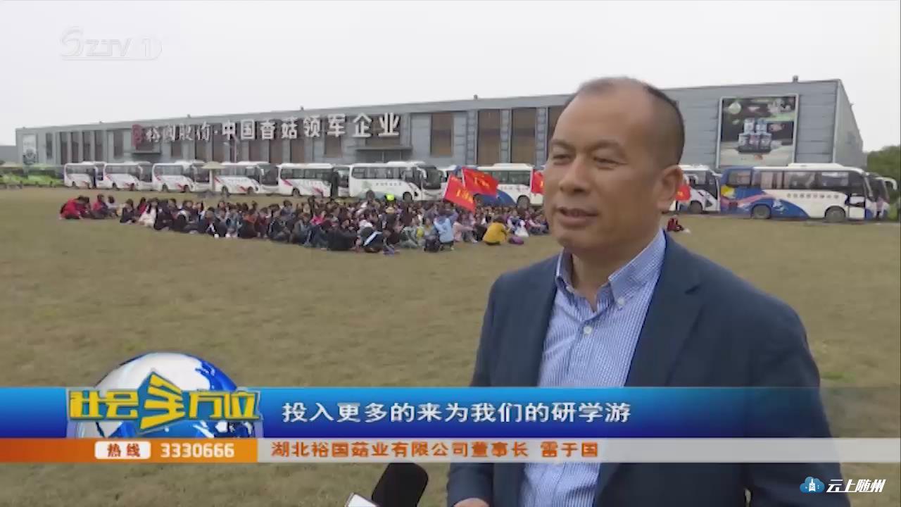【采访】湖北裕国菇业有限公司董事长 雷于国:我们裕国为研学游做了大量的前期铺垫工作,让学生在课外之余了解我们随州的支柱产业,香菇产业,也通过我们公司研学,了解到我们随州的主要产业香菇,是怎么生长的,对学生起到一种励志,下一步我们将投入100万左右,对户外拓展、科普训练、研学游的基地,发挥观赏、采摘,投入更多的来为我们的研学游、工业旅游进行更好的服务。