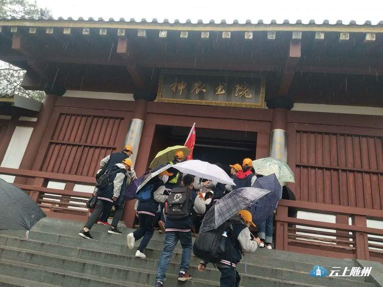 “陌上开花云雾软,万绦垂丝对澄明。”临近清明,正值春光盛景。为了贯彻落实中宣部“深入开展传统节日文化活动”的要求,曾都区实验中学组织近千名七年级师生进行“寻根之旅——拜谒炎帝神农始祖”活动。4月2日早上7点30分,七年级学生们统一着校服,戴小黄帽,迎着斜风细雨,分两批(1-6班打“头阵”,7—12班来“殿后”)前往炎帝故里。丝丝春雨反而更增情趣。