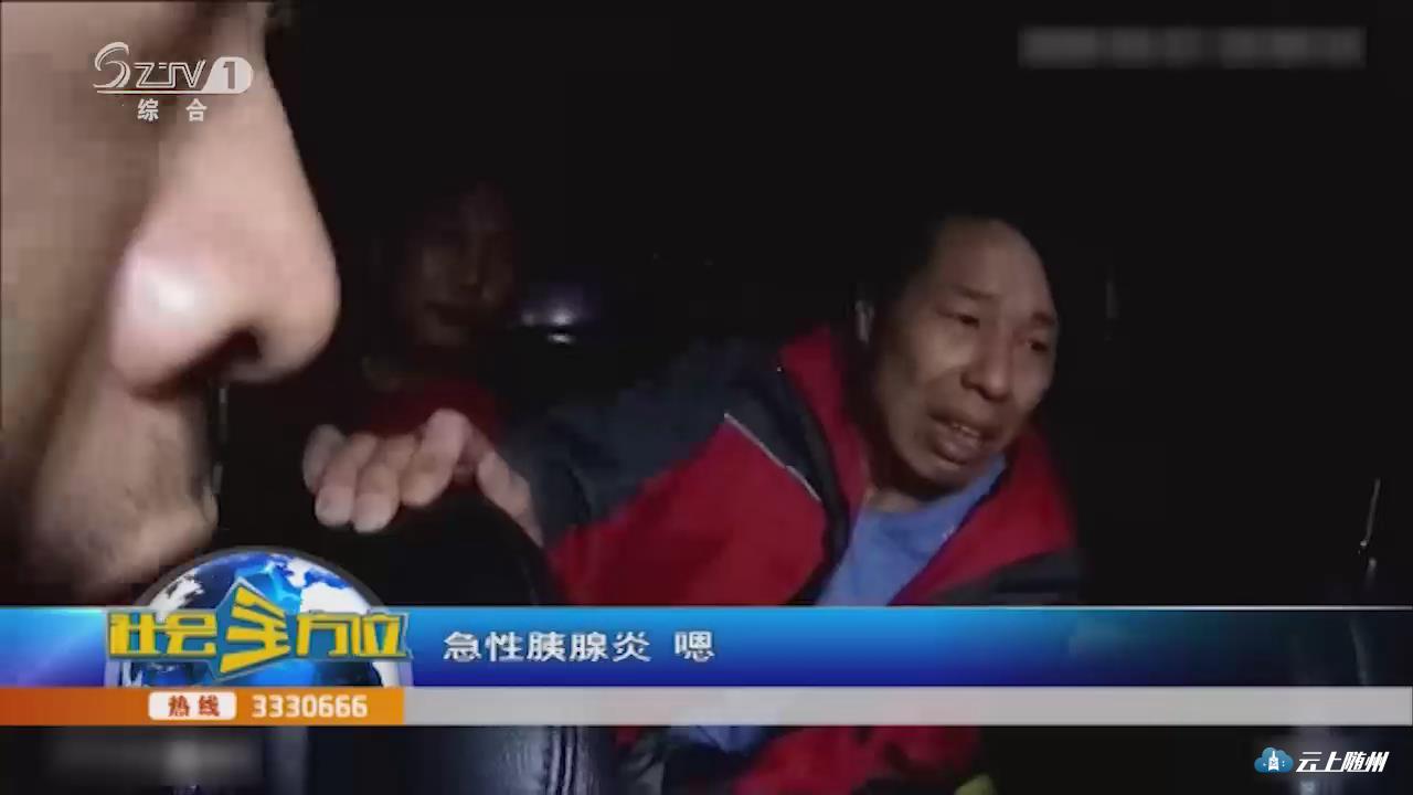 【同期声】师傅怎么回事?不知道怎么回事,突然一下子就疼起来了。哪里疼?肚子疼,左边这里。也不知道是怎么了。现在有什么感觉,一直痛。打电话给我医院的一个朋友,他说应该是胰腺炎一类的。急性胰腺炎?嗯。