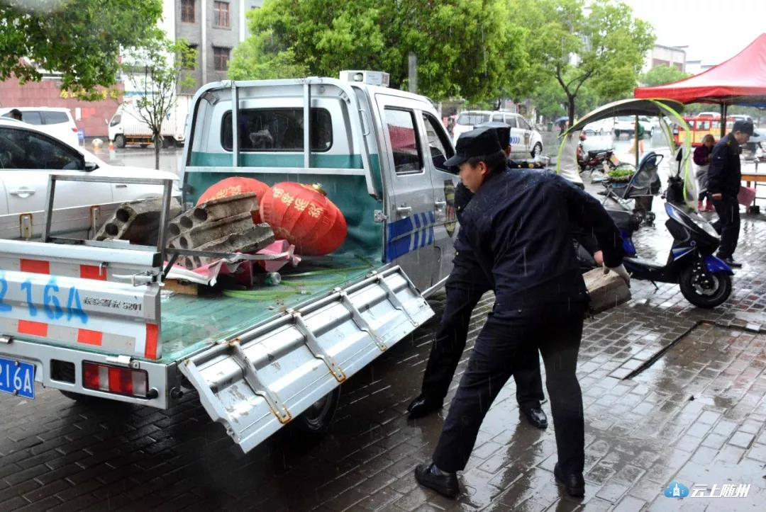 随县城区是此次集中整治的重点区域,县城管执法局、公安局、厉山镇等单位联合行动,开展环境秩序整治,劝导商户文明经营,清理违规占道、乱搭乱建不文明行为,维护良好城镇环境秩序。
