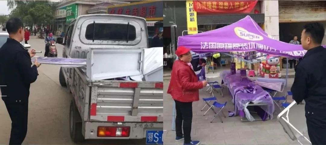 4月14日,洛阳镇镇长李婉莺带领城建专班继续上街清理出店经营情况。