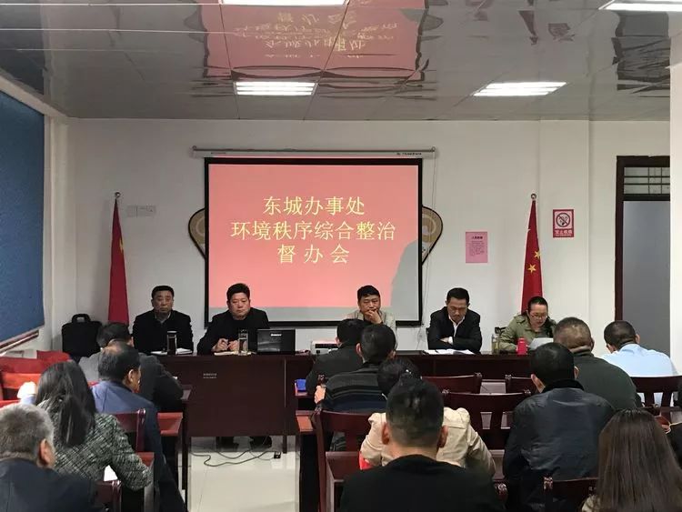 4月14日,东城办事处党工委书记王先高,主任高国新督办环境秩序综合整治工作。