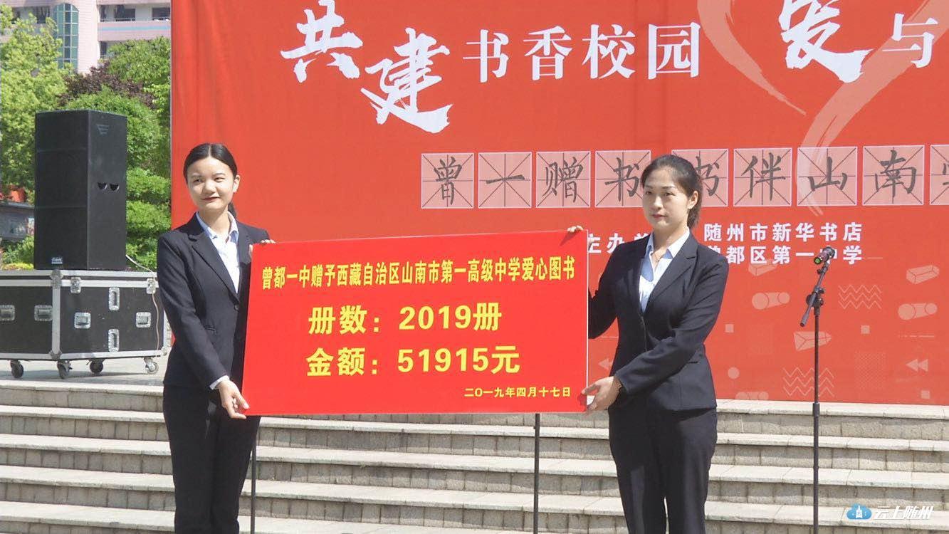 4月17日,在第24个“世界读书日”来临之际,曾都一中举行“共建书香校园,爱与阅读同行”为主题的读书活动启动仪式。启动仪式上曾都一中捐赠西藏自治区山南市一中爱心图册2019册。