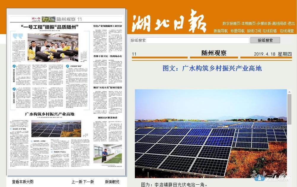 广水古称“永阳”,日照时间长,太阳能资源丰富。我市充分发挥优势发展光伏产业,推动光伏发电与现代农业等产业互补。