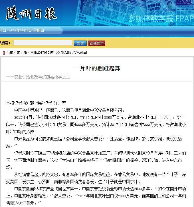 近几年主流媒体聚焦随县茶