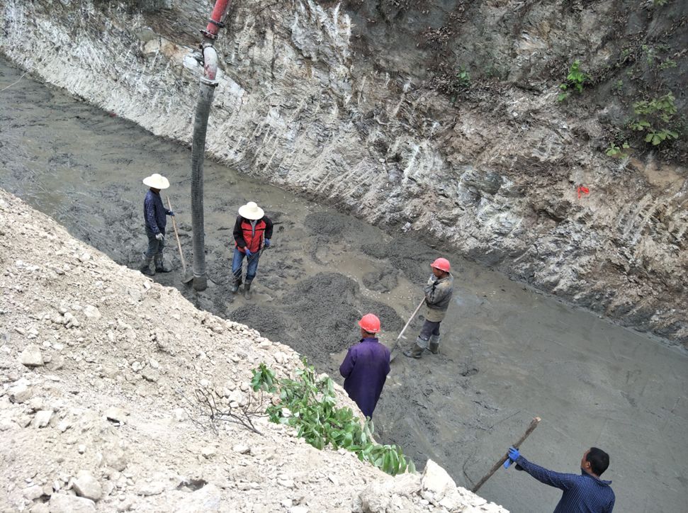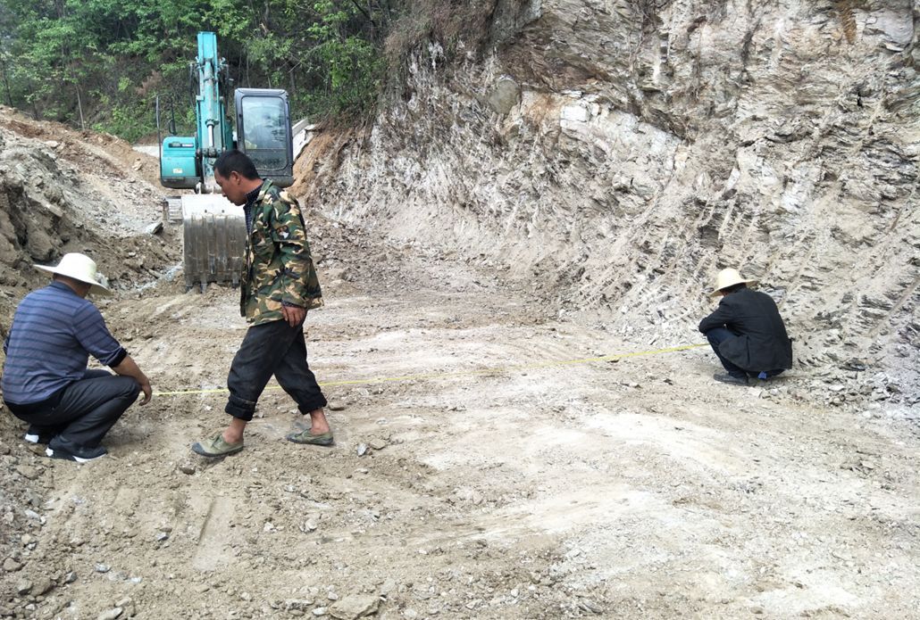 4月15日,随县厉封公路改建工地机械轰鸣,挖山、开沟、铺水泥,工人、机械在烈日下紧张施工。