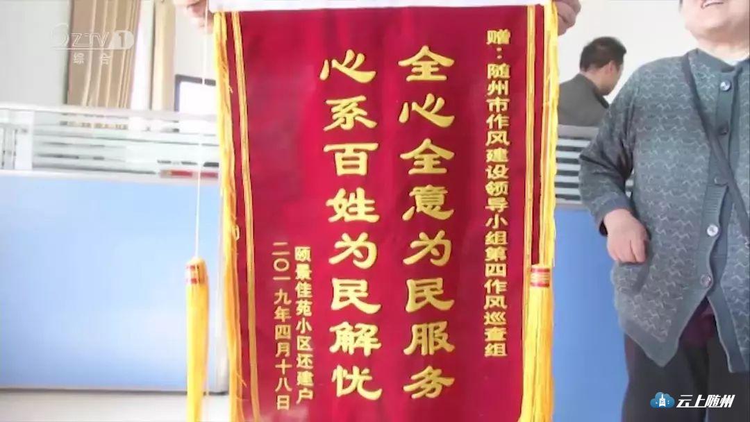 4月18日,颐景佳苑小区的7位还建户向市委作风巡查组送来锦旗,感谢巡查组的耐心协调,帮他们解决了困扰8年的办证难题。