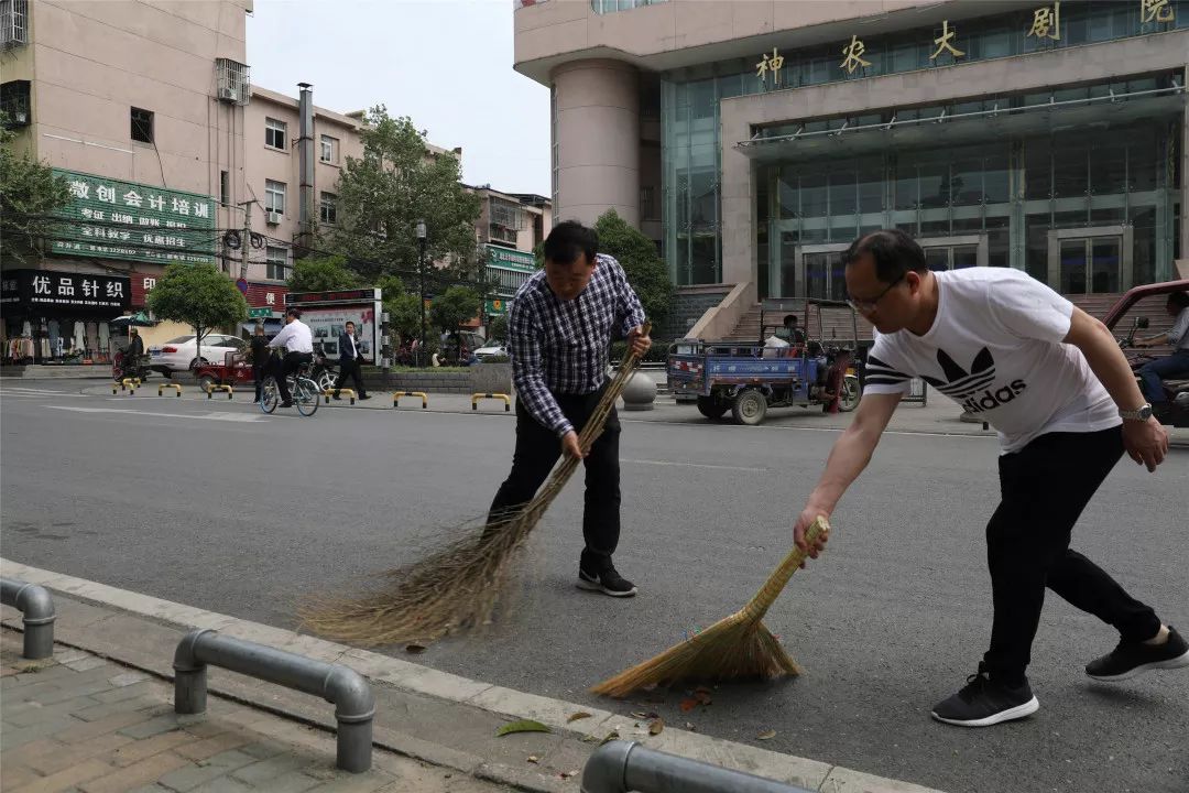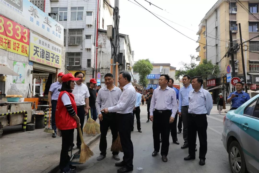 4月19日,又到周五大扫除时间,下午2:30,曾都区委书记、区城乡环境秩序集中整治行动工作总指挥部第一指挥长何运平,曾都区长、区城乡环境秩序集中整治行动工作总指挥部指挥长张健分别与区委办、区政府办干部职工一起,到包保路段开展卫生大扫除,随后组成督察组,到沿河大道城建巷、白云湖社区、聚玉街、文峰街等地,督办环境秩序集中整治工作。