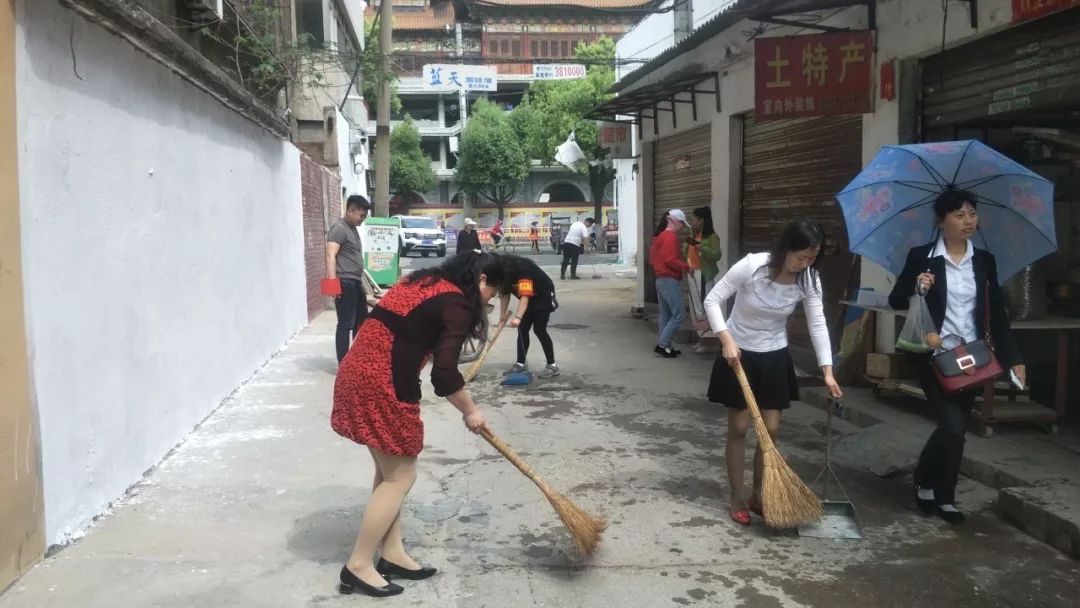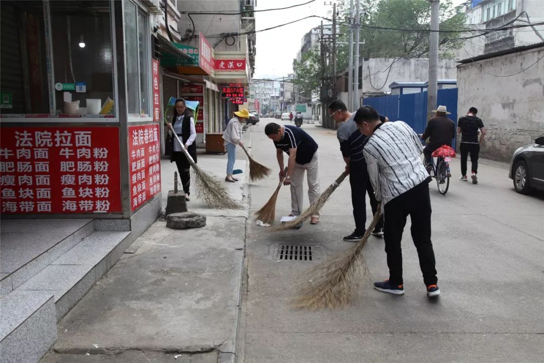 在沿河大道城建巷、龙门街,曾都区建设局、市招商局干部职工正在清扫卫生死角。何运平、张健对各单位工作给予肯定,要求学习借鉴外地先进经验,推行“街道吹哨、部门报到”机制,在各条街巷树立公示牌,亮明“街长”“巷长”的姓名、电话、职责,并公布举报电话。