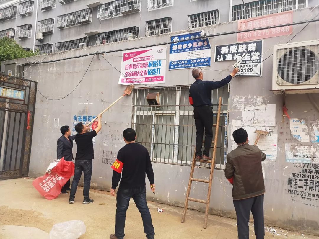 4月19日上午,府河镇党委书记张军带队,联合镇城建办、骆家河居委会、市场监管所、派出所、水管站、邮政、供电所、财险、寿险、粮食、食品、府河保洁公司等单位共同检查环境综合整治工作,共计清除“牛皮癣”65处,清理广告牌69个、拆掉废旧遮阳棚5处,清运杂物5车。