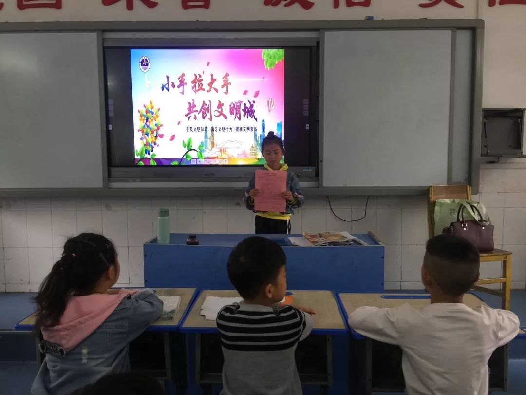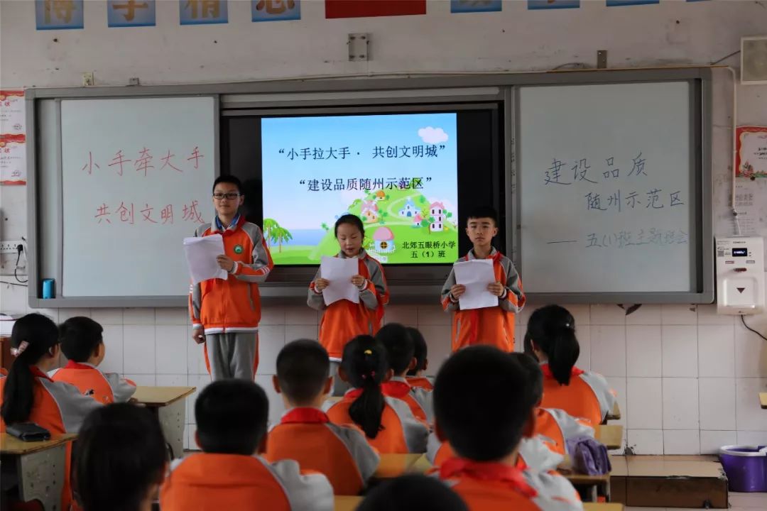 4月19日,曾都区北郊办事处五眼桥小学各班召开“小手拉大手,共创文明城”主题班会,各班讨论气氛热烈。