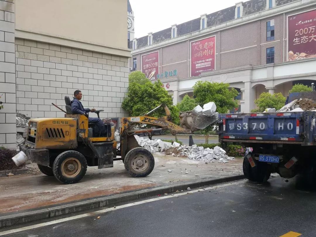 4月21日下午,城南新区组织涢水社区、碧桂园物业公司对碧桂园商业街建筑垃圾进行清理,将道路淤泥、渣土、建筑垃圾、杂草杂物等进行整治。
