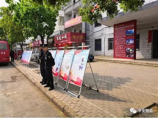 4月19日,随县公安局组织治安、巡逻、厉山派出所民警,在厉山镇神农大道老政府门前开展反恐普法宣传活动。
