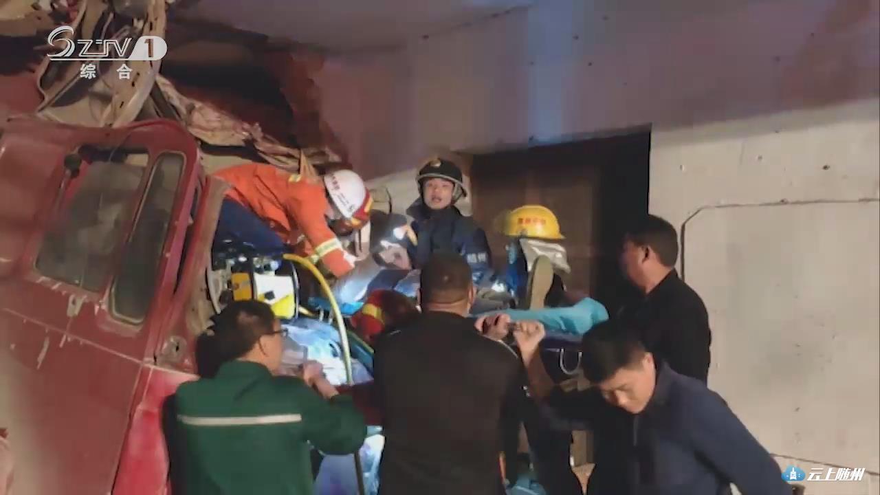 经过救援人员进一步了解,被困司机身体多处损伤。为保证救援顺利进行,消防员不停同被困者交谈,帮助保持清醒。