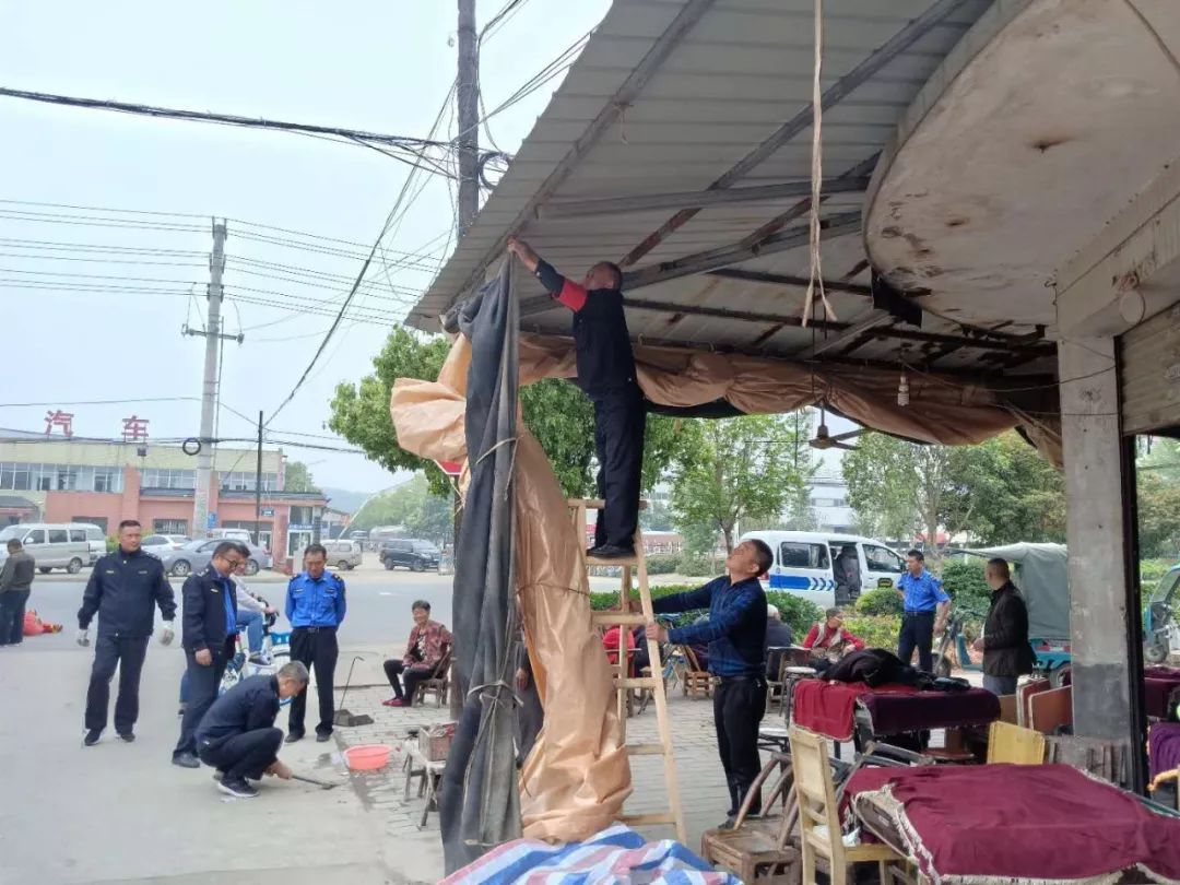 4月24日上午8点,何店镇全体行政干部及相关部门对高速公路出口至老通城酒店沿线市容环境进行集中整治,规范出店经营30家商户,劝离乱停机动车8辆,清除杂物达50余处。