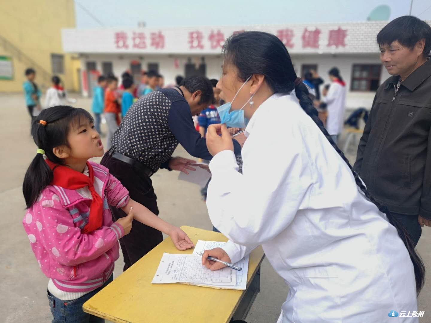 为了更好地落实健康扶贫精神,4月25日,随州市疾病预防控制中心的工作人员対广水市余店镇徐店中心小学140多名在校学生进行健康体检。