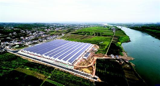 当一缕阳光倾泻在屋顶光伏面板上,柔光散射下来,映照在室内鱼池,一尾尾长约1米的鲟鱼群,静静游着。4月15日,宜都市高坝洲镇天平山村,总投资10亿元的清江鲟鱼谷项目一期工程完工,实现鲟鱼养殖加光伏发电的综合业态。
