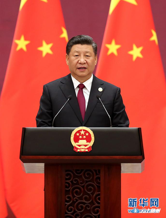 4月26日,国家主席习近平和夫人彭丽媛在北京人民大会堂举行宴会,欢迎出席第二届“一带一路”国际合作高峰论坛的外方领导人夫妇及嘉宾。这是习近平发表致辞,代表中国政府和中国人民热烈欢迎各位嘉宾。 新华社记者 黄敬文 摄