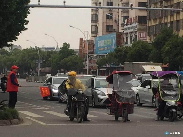4月27日,周六休息日,市应急管理局的志愿者们早早来到鹿鹤转盘处进行“文明交通我劝导”执勤,引导市民树立安全出行的意识、养成文明过马路的习惯。