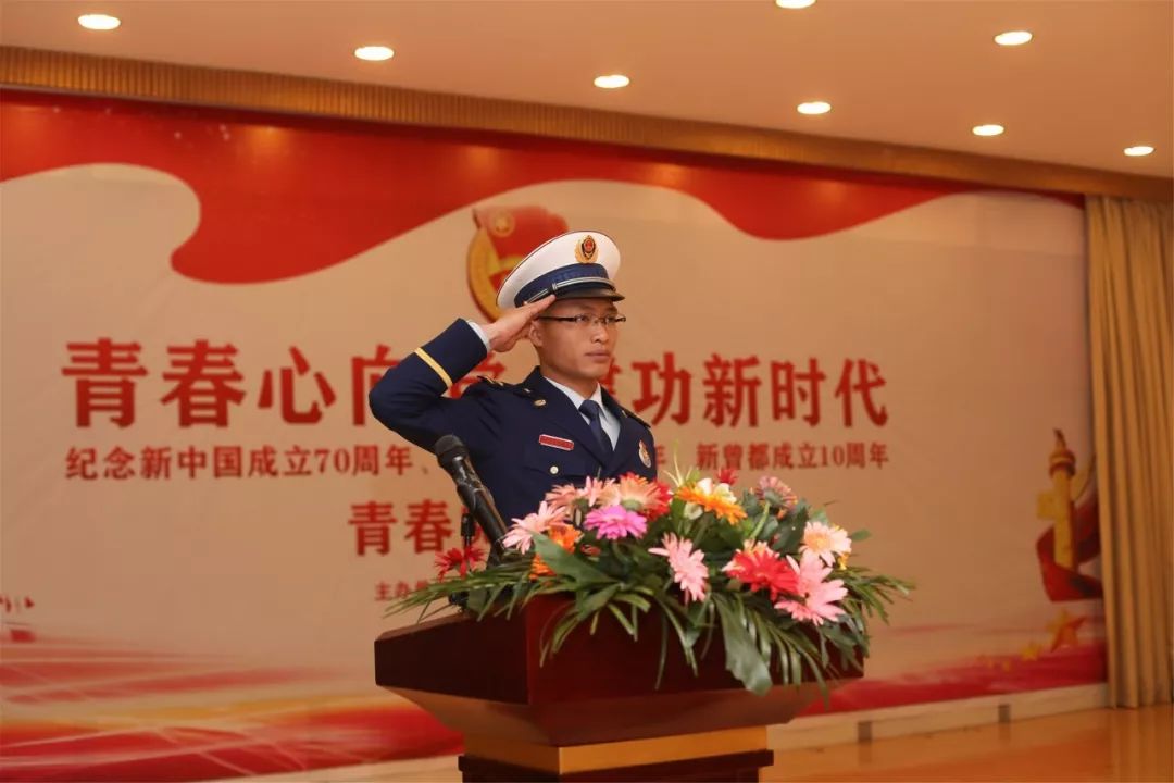 青年代表就“五四运动100周年”“建国70周年”“新曾都成立10周年”进行交流发言。