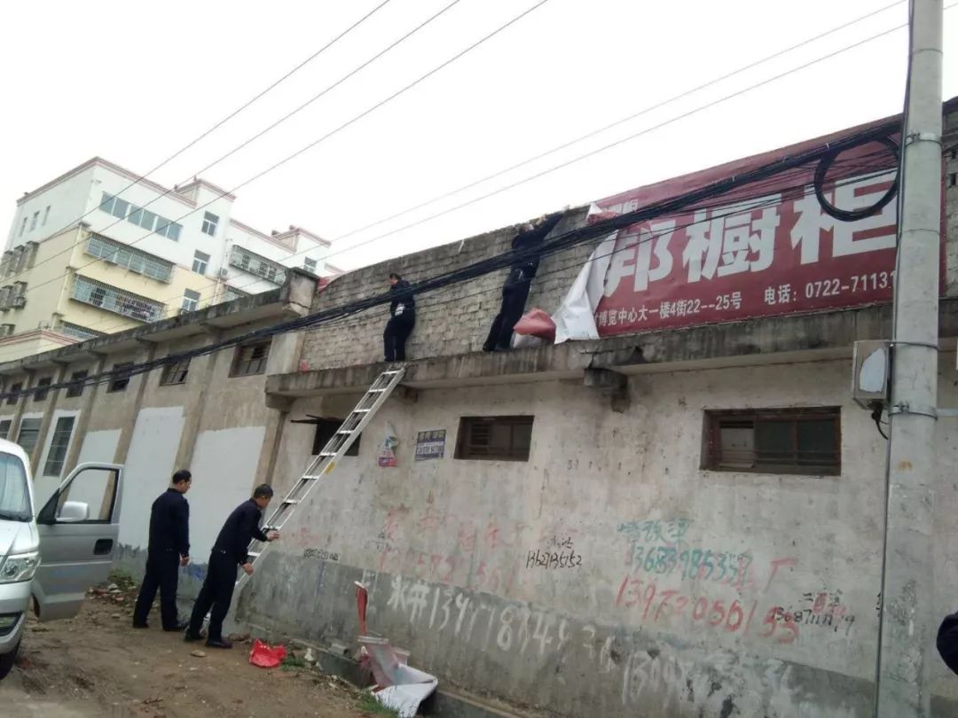 4月29日上午,城管执法人员联合八里岔社区10余人,对汉孟路电线杆上的老旧户外广告牌进行集中清理,共拆除广告牌30余处;楚风社区联合市城管执法局,到不愿主动清理乱搭乱建的住户家中下达限期拆除通知书,全面整治居民乱搭乱建问题。共下达通知书10余份,下一步将依法对违规搭建搭棚等建筑进行拆除。
