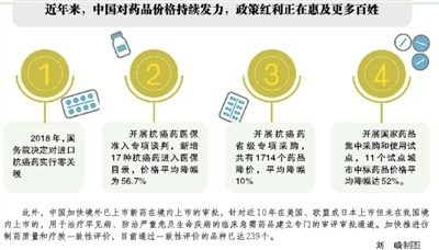 北京是集中采购试点城市之一。北京某三甲医院肿瘤科医生表示,药品降价落地实施后,大大降低了癌症患者的负担。“像吉非替尼、伊马替尼等抗癌药,过去患者吃半年可能就要花10万多元。现在一下子就省了八九成。这给很多患者增强了战胜病魔的信心。”