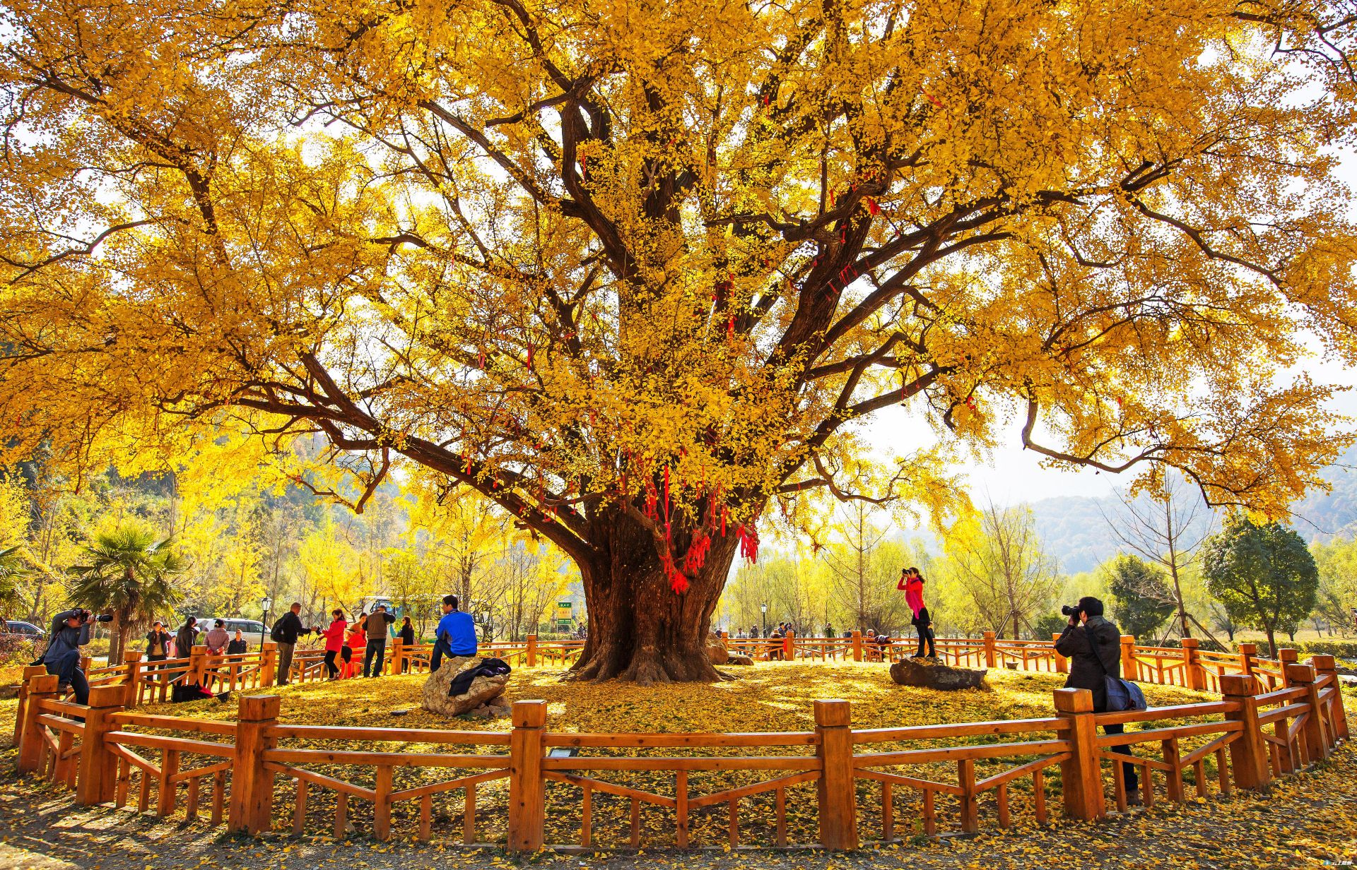 随州大洪山旅游的发展,给了这颗千年古银杏更多的展现在世人面前的机会。每年,无数的游客来到这里,见证着古银杏的沧桑传奇。人们围着古银杏祈福祝愿,无数的祈愿红丝带挂满挂银杏枝干。在当地村民心中,古银杏早与他们的生命融为一体,成为他们亘古不变的伴侣。一代又一代,山民们在银杏树下出生、长大、变老……而古老的银杏树,也似一尊大洪山的守护神,以不老的身躯,见证着大洪山千百年来的传奇……