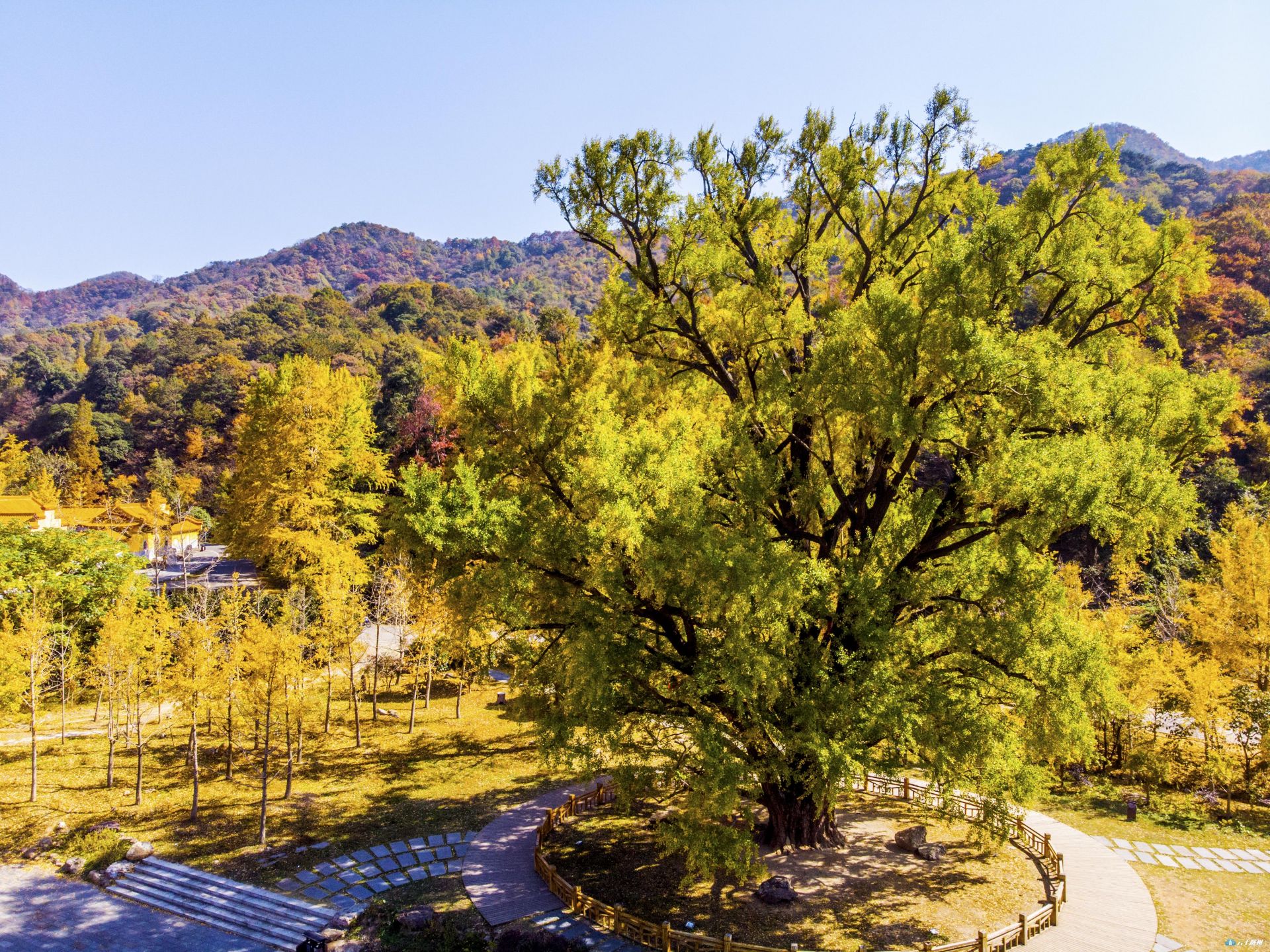 在湖北随州大洪山风景名胜区主峰脚下,有一棵相传近三千年树龄的古银杏树。这棵古银杏树高38米,直径2.61米,树冠荫笼面积400多平方米,树围8.2米,七个人环抱树腰还需再加一只手,据称是中国目前仅存的四株树龄最长的树之一。中国林学会树木学分会鉴定专家、浙江农林大学教授何云核经过考证后,认定其为“华中银杏第一树。”此树可谓根深须广,枝繁叶茂,春夏时节,叶片翠绿,绿荫葱茏。每逢金秋时节,银杏树四周层林尽染,银杏树叶片金黄,鲜艳夺目,与四周层林尽染的远山近峦相互辉映,似一尊顶天立地的金身大佛,耸立在色彩斑澜的世界里,极为壮观,引来无数的游客信中膜拜。