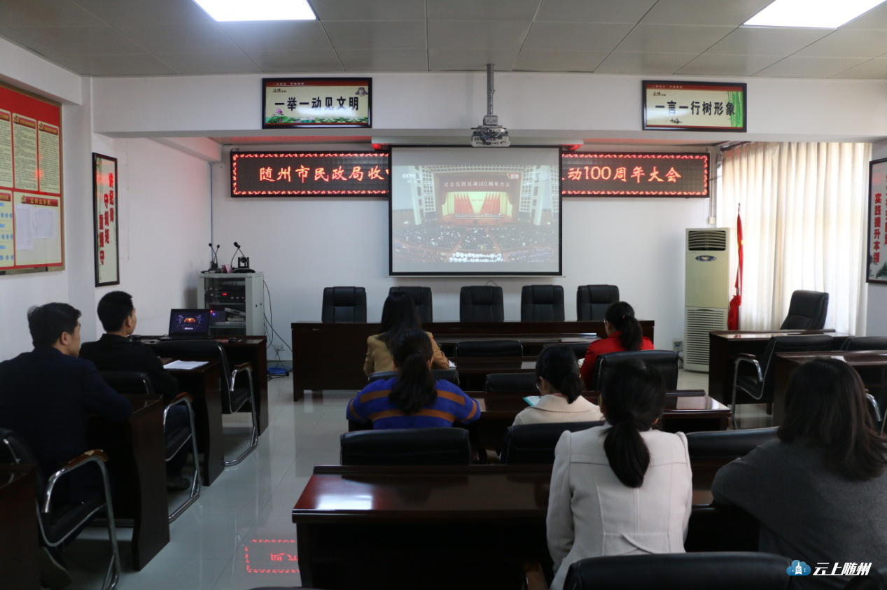 4月30日上午,纪念五四运动100周年大会在人民大会堂举行,中共中央总书记、国家主席、中央军委主席习近平出席大会并发表重要讲话。随州市民政局组织青年干部集中收听收看大会盛况。