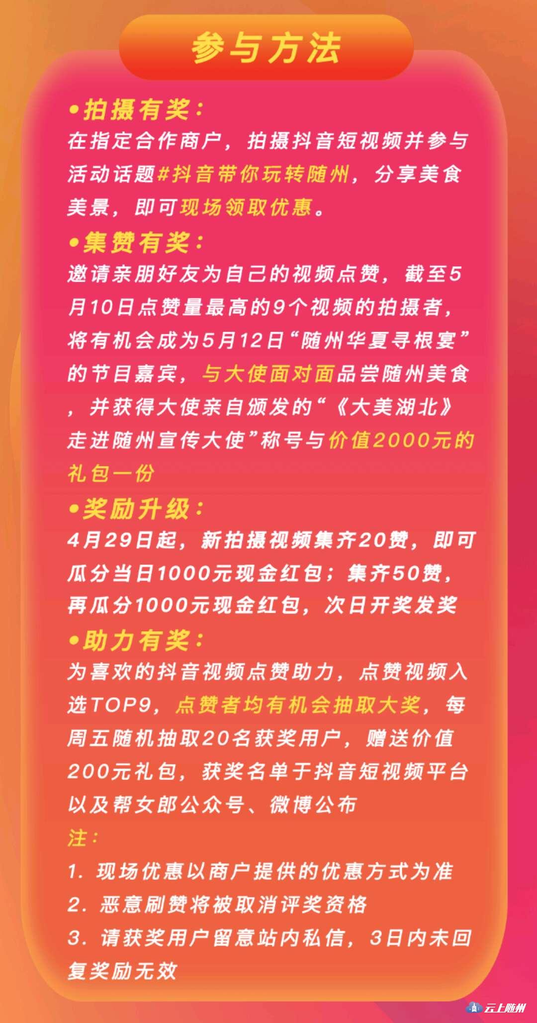 《大美湖北》第五站,即将登陆随州!这次,我们联合抖音App给随州人民送福利啦!动动手指,就能免费吃、痛快玩!