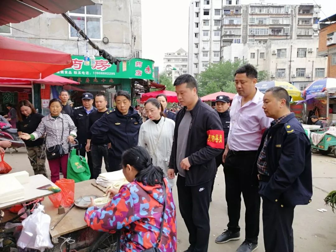 5月2日上午,东城办事处主任高国新带领环境整治专班人员,对聚玉街、文峰街、文峰西街进行环境综合整治,对沿街店铺出窗经营、流动商贩进行劝导、规范经营。