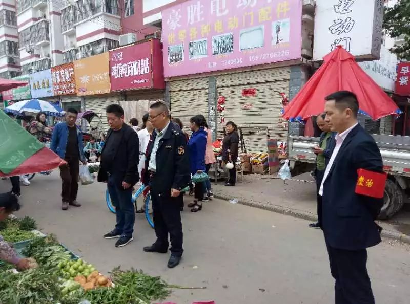 5月2日上午,城南新区管委会主任聂德江带队,组织管委会、社区干部,联合市、区两级城管执法人员共计15人,对碧桂园街市的占道经营、流动摊贩进行常态化整治。共劝退占道经营早餐摊12家,劝导流动蔬菜摊贩20余人。