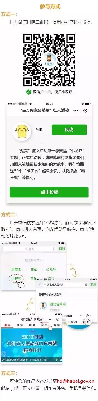 “百万网友品楚菜”征文活动第一季聚焦“小龙虾”专题,小编期盼着您的来稿。