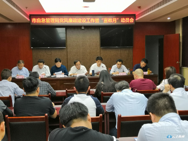5月5日,刚完成组建的市应急管理局召开局机关党风廉政建设工作暨“宣教月”动员会,会上组织学习了局党组关于党风廉政建设工作要点和第二十个党风廉政建设宣传教育月活动方案等文件,安排部署了2019年应急管理局党风廉政建设和反腐败工作,推进应急管理局党风廉政建设向纵深发展。