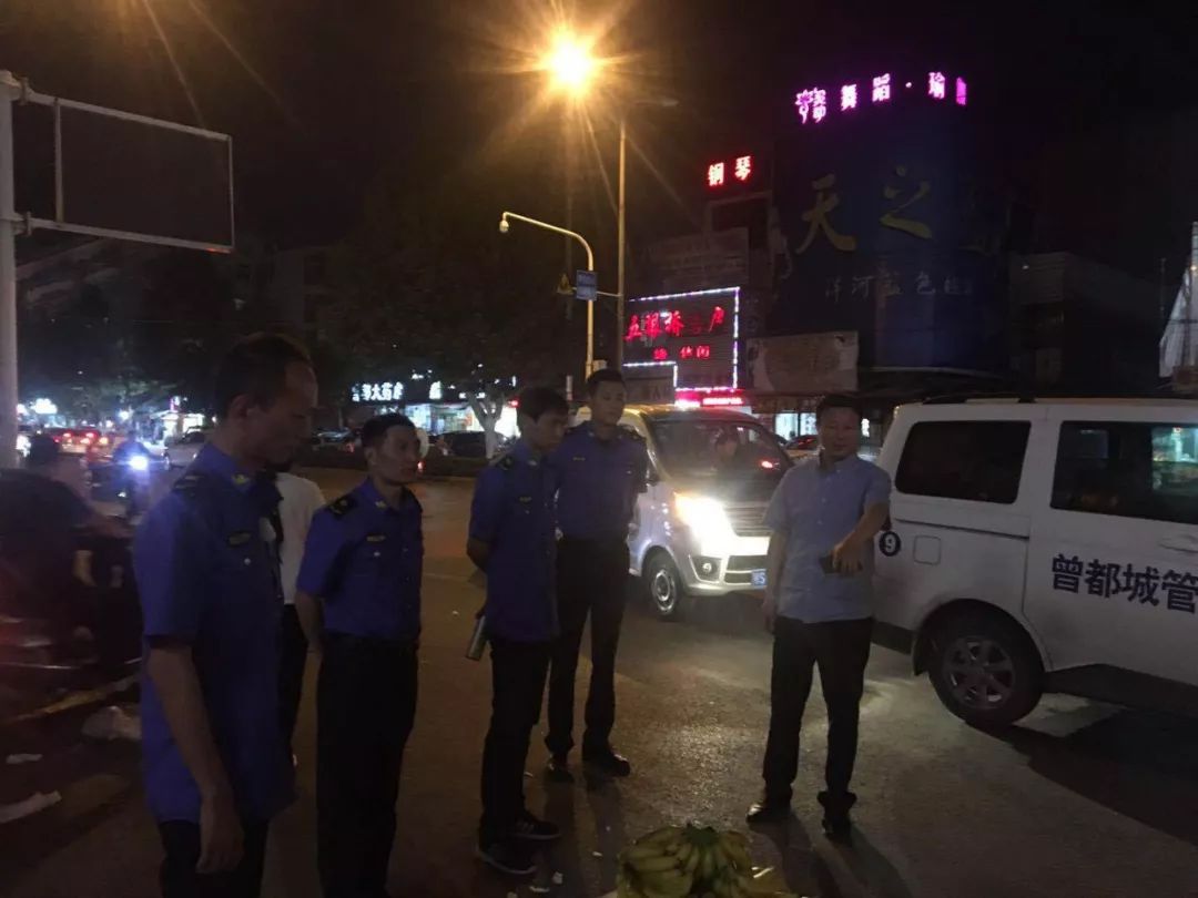 5月5日晚,曾都区城管执法局组织10余名执法队员,对辖区内夜市烧烤、占道经营等现象进行专项整治。