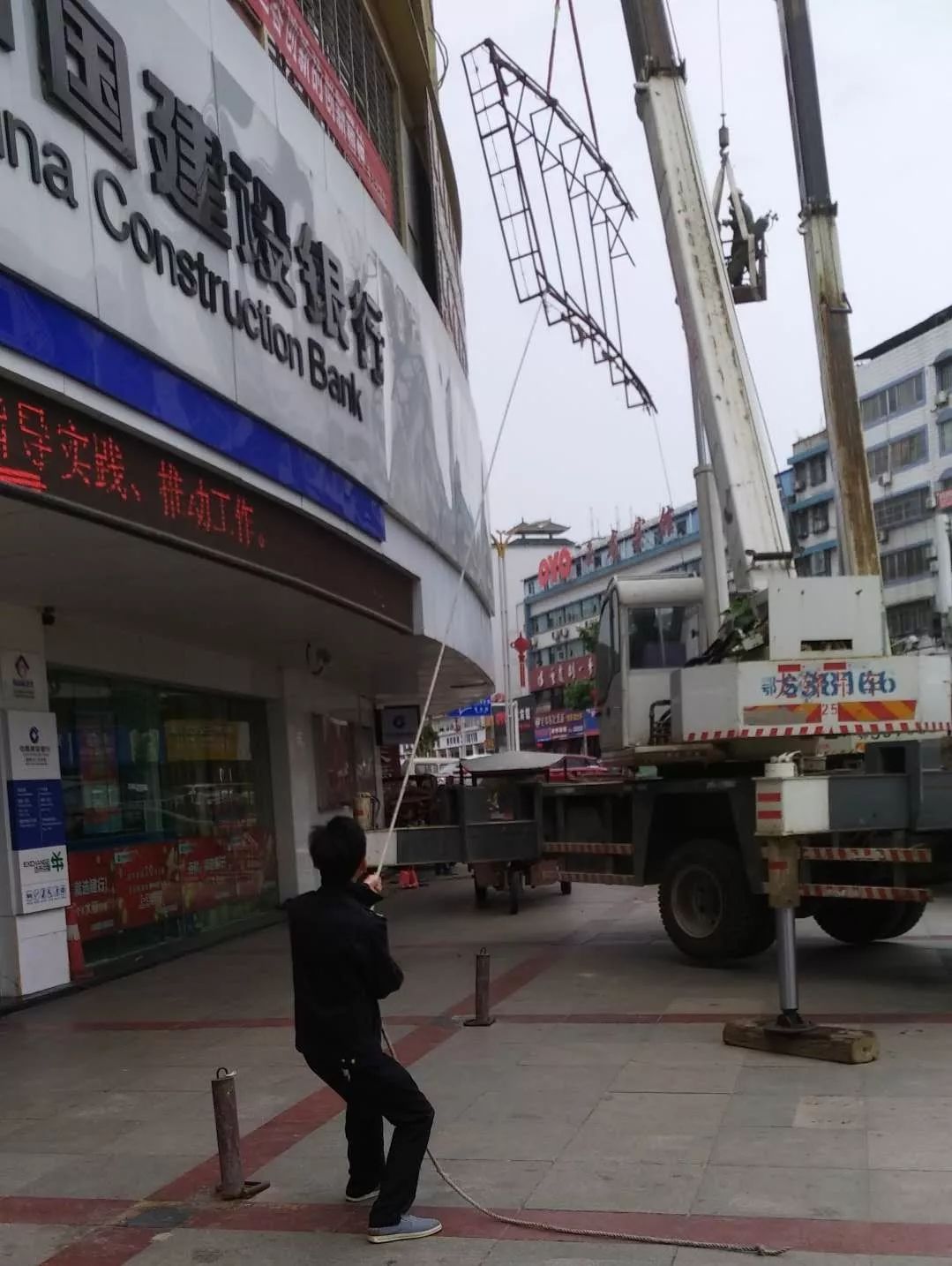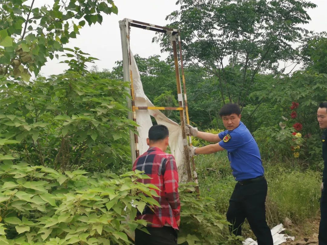 5月6日上午,西城办事处联合城管执法部门,拆除水西门转盘锦榕大厦违规广告牌。清除沿河大道沿街破损建筑屋顶边檐一处并做好后期维护。共出动大型吊车3辆,拆除大型广告牌10余块,清除建筑安全隐患1处。