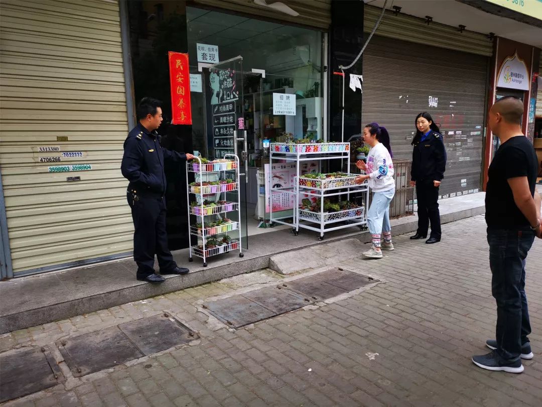 5月6日早,西城办事处主任汪冬梅带队,组织机关干部、社区干部、巡防队员联合城管执法队员共10余人,巡查整治水西门市场、聚玉街、小南门街等重点地段,现场商议工作存在薄弱环节,明确下一步工作计划改进措施。共疏导流动摊贩50余家,规范劝导出窗经营沿街店铺10余户。